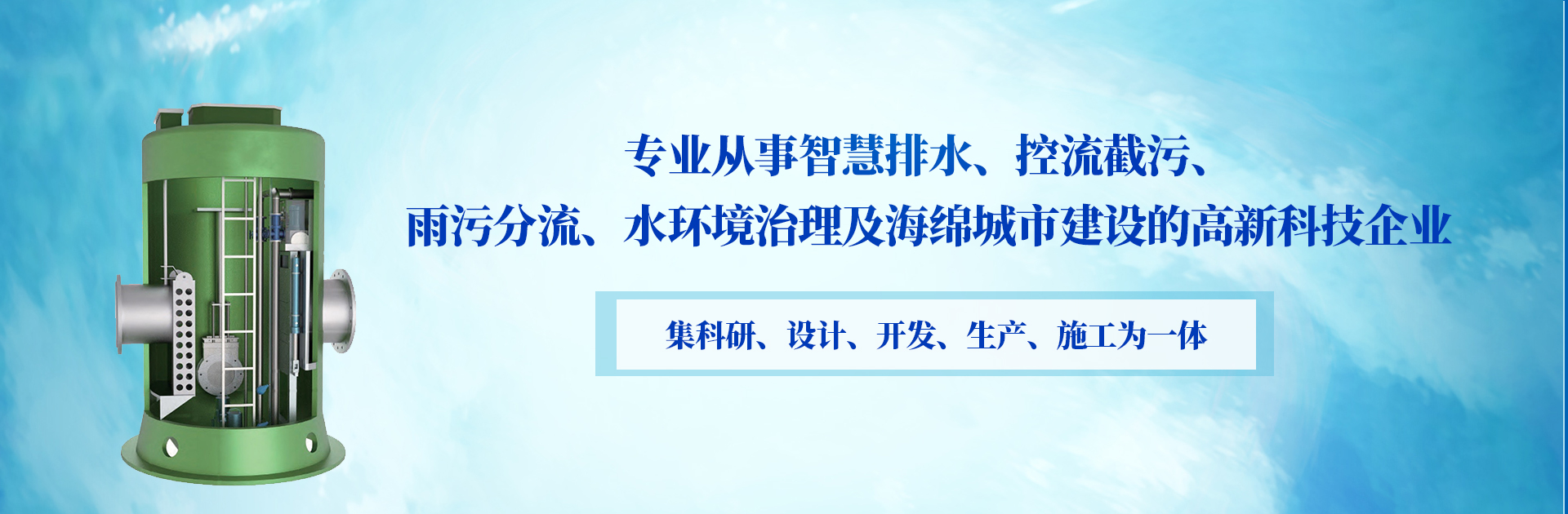 我公司集科研、设计、开发、生产、施工为一体,主要产品有智能截流井、下开式堰门、旋转堰门、智能平板闸,一体化预制泵站、一体化智能截流井、一体化泵闸、配套云服务平台。