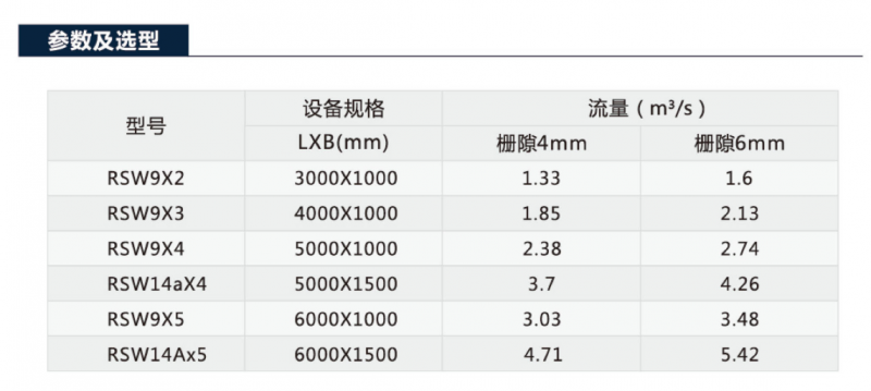 一般情况下,污水经由水平格栅从排放口流入溢流管。被截留的污染物通过可移动清洗梳清理,然后进入后续的污水管,在这一过程中,梯级的清理梳的形状显得尤为重要。根据工艺种类的不同,污水可水平、自上而下或自下而上的径流通过水平格栅。更重要的是,其操作稳定且几乎不需要维护。(RSW-K型)格栅设有一个可控的撑板堰,适用于水流水平径流的工艺,是(RSW型)格栅中常用的一种类型。它的处理量取决于实际水量,也取决于有效水深,同时可以起到缓冲流量的作用。