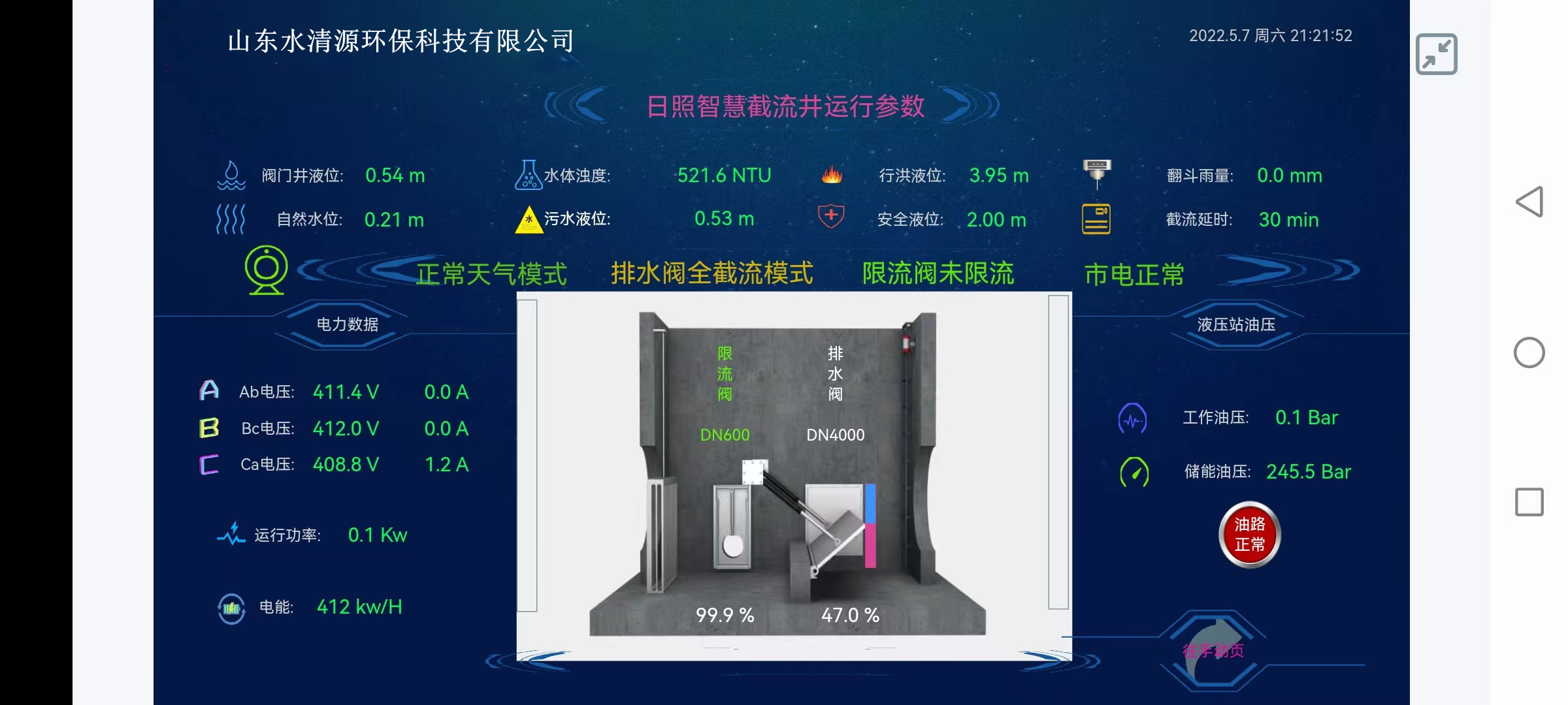 公司开发了拥有自主知识产的智慧排水系统,通过为雨洪调蓄设施的日常运行监控提供监测手段,为水环境治理项目建设成效的定量化绩效评价与考核提供数据依据,为雨洪调蓄设施的定期养护与日常巡检提供数据支撑,为雨洪调蓄设施的应急管理决策提供科学参考,为雨洪调蓄设施的智慧化调度运行提供数据模拟。实现了雨洪调蓄设施全生命周期管理的自动化、可视化、智慧化。